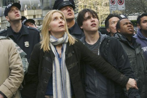 The latest 80s sci-fi reimagining has not only the legacy of its successful forebear to contend with but also the need to escape the black hole of failure that has drawn others in (R.I.P. Bionic Woman, Knight Rider, and Terminator: The Sarah Connor Chronicles). V was the most anticipated sci-fi show on my viewing plate this fall, but sadly it has not lived up. The simple premise of aliens coming to Earth disguising their nefarious plans (and lizard bodies) behind attractive, friendly human-like faces seemed easy enough to pull off. However, the new series seems to want to do too many things at once. Taking a cue from successful genre-crossing shows like Lost (and the new series Flash Forward), V seems more interested in creating some kind of ensemble drama of intersecting story arcs than a single coherent tale of insidious domination and human resistance. Can you believe that even after two episodes, the resistence has not really formed yet? (Well, technically it formed before the ships even arrived, but the main characters have not yet formed/joined the resistence yet.) I seem to recall that being central to the original series. On the other hand, the lizards’ true nature, their presence on Earth before their ships arrived, and their darker plans for humanity have already become well known. Unfortunately, Elizabeth Mitchell (once so great as the sexy-smart Juliet on Lost)is not in a constant state of frowning as an FBI agent trying to figure out who to trust and how to fight after her partner is revealed as a V (which brings me to another fan-boy complaint about how they should never have called the aliens “Vs”. They wanted to be friendly and known as the “visitors” why would they want to be called “Vs”? That’s just ridiculous!) Joel Gretsch is good at playing the sci-fi hero (remember him from The 4400?), but his character being a priest seems ill-suited and heavy-handed (we get it, some people would question faith in God if aliens arrived). Anyway, the plot seems very scattered and I don’t really find that I have anyone to root for among the humans. I actually would prefer if Anna (the always-luminous Morena Baccarin) as the alien leader, would just unleash her endgame already and get rid of so many of the human characters.