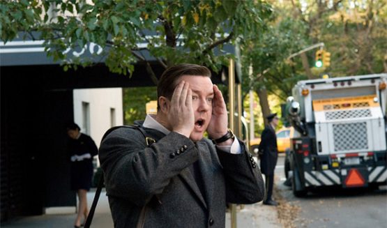 With a name like Ghost Town you probably wouldn’t expect the movie to be a romantic comedy. It doesn’t start out like one. Ricky Gervais stars as Dr. Pincus, a year-round grinch who avoids people as much as he can (which may be a challenge since he’s a dentist). After a near-death experience during surgery, this misanthrope finds himself able to see ghosts. Suddenly spirits from all over New York City eagerly seek him for help with their unfinished business. One ghost in particular, played by Greg Kinnear, wants Pincus to break up his widow (played by Tea Leoni) and her fiancé. So here’s where the romantic comedy part comes in: as he gets to know her, Pincus starts to fall for the wife. I’ve never been a big Ricky Gervais fan. His awkward stammering and self-embarrassing moping is not enjoyable to watch. As a bitter jerk, those qualities are unfortunately amplified. So when he starts to form a bond with Leoni’s character it just isn’t believable. All of a sudden, he’s Mr. Warm & Friendly? Mr. Loveable? Not likely. In the end, Pincus learns a lesson about being a good person by helping out the needy ghosts, but the movie would have been so much better if it had just been about him and the ghosts and not gone down the path of this romance. Between this movie and The Invention of Lying, Gervais may fancy himself the new rom-com guy, but he should just leave that kind of thing to Hugh Grant. (3 out of 5)