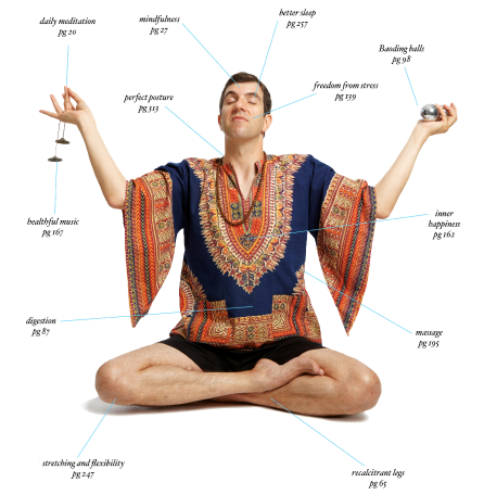 His sense of humour and ability not to take himself too seriously really adds a light touch to this book, especially when talking about issues that many many people feel intensely about and take very seriously. Focusing each chapter (and approximately a month from his own life for each chapter) on a different body part (e.g. The Foot) or aspect of wellness (e.g. Digestion), he would explore the thinking and some of the medical research on that area. Often he would incorporate suggestions from various experts that he would interview into his health regimen (for example, he installed a treadmill desk at the office so he could be exercising as he worked), or participated in trendy or relevant activities and programs (the most memorable being his workout in Central Park with some men into the “Paleo” movement who essentially ran barefoot and hurled rocks).