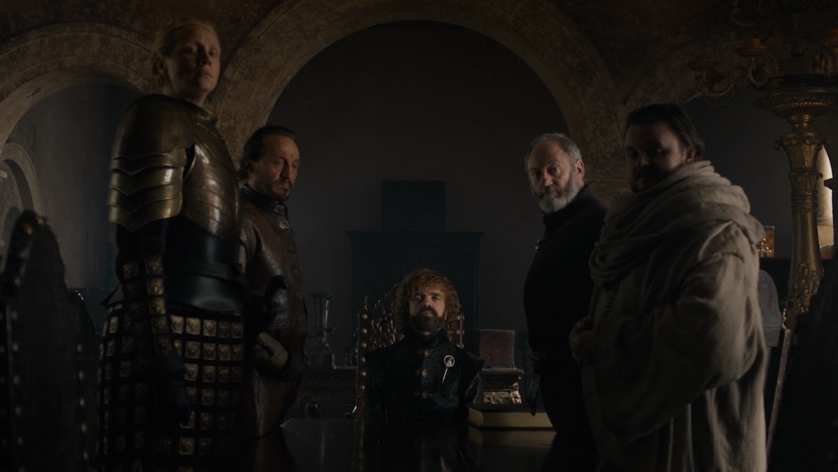 There are a bunch more ways to compare the two shows. For no good reason they chose Bran to be king of the Seven (now Six) Kingdoms, and ended with a Seinfeld-esque scene of the small council (now populated with characters that we know and like) having jokey banter. Similarly, after his conciliatory speech, the last BBT scene shows Sheldon still seemingly holding court with his friends, eating takeout on the sofa. While the BBT scene seems comforting and well-earned, the GOT version seems like self-satire. The endings also revisit the theme music, with GOT orchestrating a melancholic, choral version of the orchestral theme as Jon and the wildlings march out someplace north. On BBT, the Barenaked Ladies do a stripped-down acoustic version of the theme song, giving a nostalgic flavour to the final visuals (again, of the gang eating takeout).