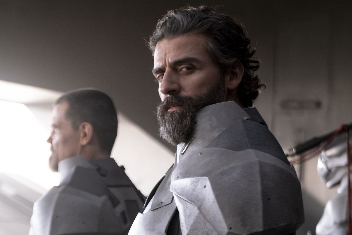 As Paul, I was suitably impressed by Timothee Chalamet (who I don’t particularly love as an actor) who was initially not as whiny a teenager as I thought he’d be and, as his character developed, not as smug or cocky as I expected either — plus, he didn’t run his fingers through his hair too much either. Phew! Along with Chalamet, Rebecca Ferguson was pretty good as his mother Jessica — a strong woman protecting her son from people trying to kill him or use him (as her own religious order, the Bene Gesserit, wanted to do). Oscar Isaac (Remember him as Star Wars‘s Poe Dameron?) does a good job as the serious yet loving father to Paul (though their heart-to-heart scene felt a little out-of-place in my opinion — it had the whiff of a Spielberg scene, where families air their emotional issues as big sci-fi stuff is going down around them). On the side, the supporting cast of former super-actors Jason Momoa, Josh Brolin, and Dave Bautista do a stolidly good job of shouting, grunting, running, punching, and generally gruffing it up. I really liked the casting on this movie and there are more excellent actors I haven’t even mentioned who did nicely embodying Dune‘s larger-than-life characters. (I confess that previously I had a hard time distinguishing these other characters in my mind, but now it’s very clear.)